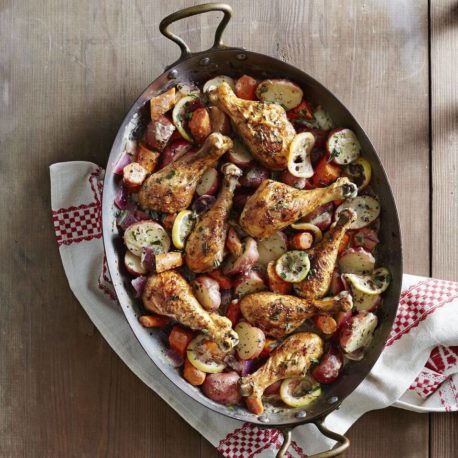 Chicken Drumsticks and Vegetables in Mustard-Tarragon Sauce